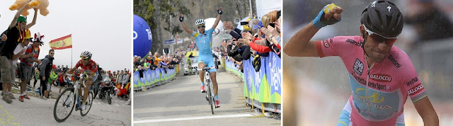 | Nibali, vencedor de la Vuelta 2010 y del pasado Giro, es el gran favorito (Fotos (c): www.20minutos.es, www.roadcyclinguk.com y www.theage.com.au) |